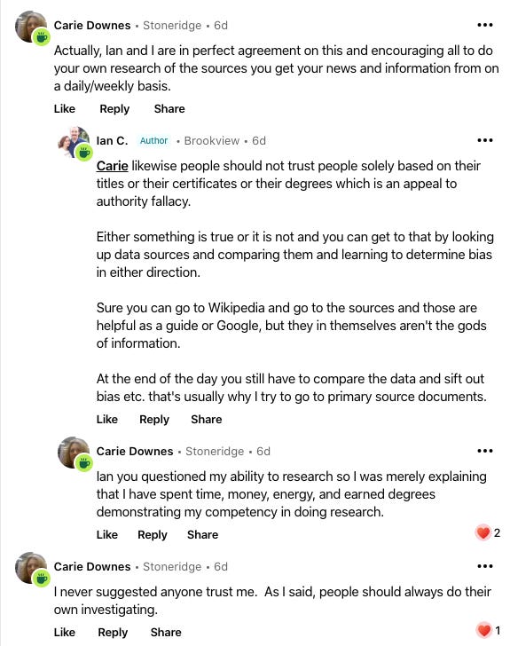 Nor is saying that you have a bunch of degrees, certificates, or diplomas. That’s when you know they’re insecure in their knowledge because it’s a hard appeal to authority.